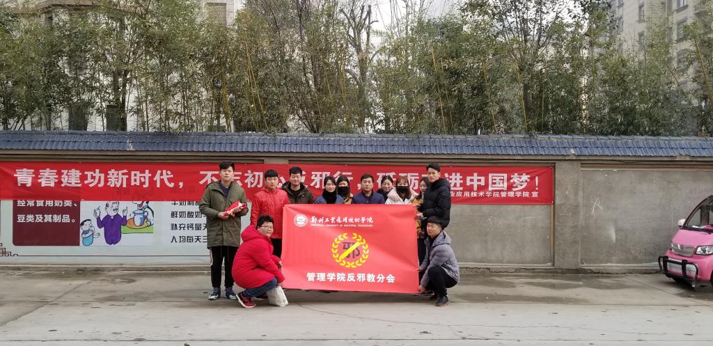 1月12日,yL23411永利集团官网反邪教分会组织社会实践团队在新郑市小区、公园等地开展了形式多样的反邪教宣传活动。