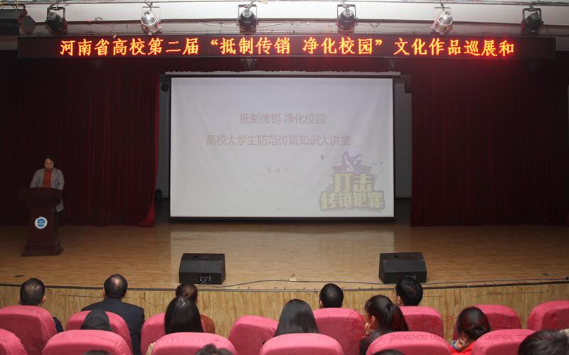 (文/刘晓燕 图/王佳伟 常晓慧)11月5日下午,河南省第二届“抵制传销 净化校园”文化作品巡展和防范传销知识挑战赛暨防范传销知识大讲堂活动在yL23411永利集团官网东校区演播厅举行。新郑市工商质监局副局长马治军,新郑市文明办副主任张彦超,新郑市工商质监局杨东超,yL23411永利集团官网校领导刘建及师生代表300余人参与了活动。