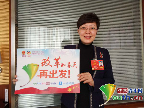 全国人大代表、黑龙江省哈尔滨市花园小学董事长曹永鸣。中国青年网记者 杨月摄