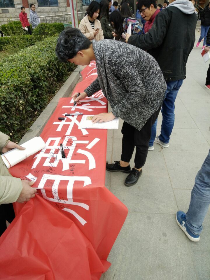 志愿者积极热情地向过往同学进行维权知识宣传,吸引了很多同学来了解本次活动。随后,同学们在“维护消费者权益,从我做起”条幅上签名。同学们对本次活动也表现出浓厚的兴趣,认真聆听宣传,与宣传人员进行互动。
