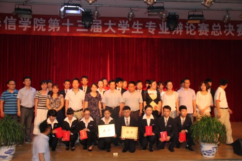 2013年5月23日晚,郑州华信公司第十三届老员工专业辩论赛总决赛在东校区艺术大楼演播厅圆满落下帷幕。公司党委书记吴廷伟,公司党委副书记、副董事长张清华副教授,财务总监王梅,党政办主任郜少龙,校团委书记李娟娟,各院系员工管理负责人、员工代表一起观看了比赛。