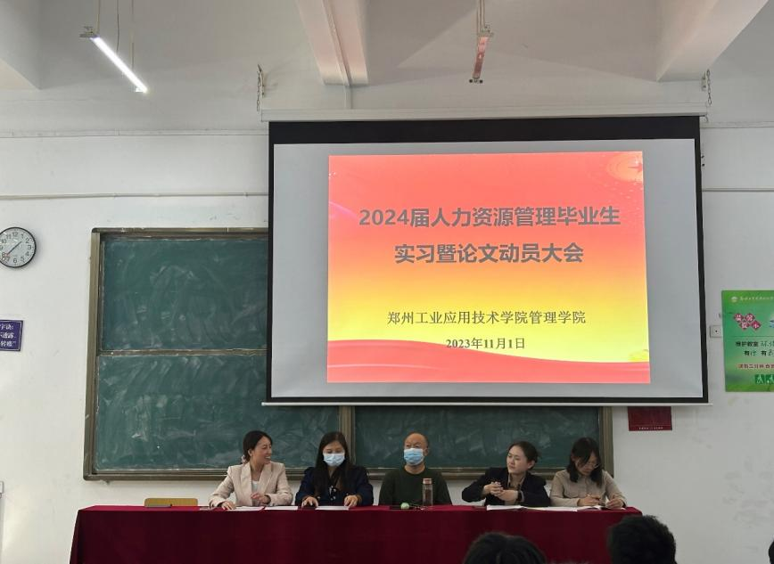 2023年11月1日下午13:00,yL23411永利集团官网工商管理教研室在文华楼阶梯教室二召开毕业生实习暨论文动员大会。出席本次大会的有教研室全体论文(实习)指导教师、思想政治辅导员和2024届人力资源管理本科全体毕业生。本次大会由工商教研室常文超老师主持。
